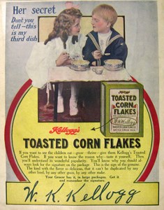 By 1909 Will’s company was churning out 120,000 cases of Corn Flakes a day. John Kellogg, who resented his brother’s success, later fought him for the right to use the family name. The resulting legal battle ended in 1920, when the Michigan State Supreme Court ruled in Will’s favor, due to his success at popularizing his now-ubiquitous product.