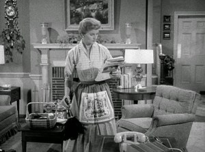 People rushed to buy appliances, houses, cars, dishwashers, washing machines, dryers and backyard barbecue grills and new home freezers. They also bought television sets in record numbers and watched shows that represented their new idealized lives like Ozzie and Harriet and Leave It to Beaver. Beaver’s mother, June Cleaver was depicted as a housewife freed from household chores and often was serene and perfectly dressed with pearls and high heels pushing a vacuum cleaner and putting meals on the family table.